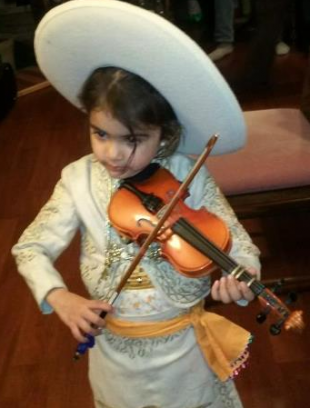 Here's a photo that shows your "fish" well. I love her bow hold. She's playing a 1/16th size violin now.