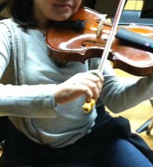 Orchestra Teacher Mrs. Gonsky: "Another Happy Bow Hold!"